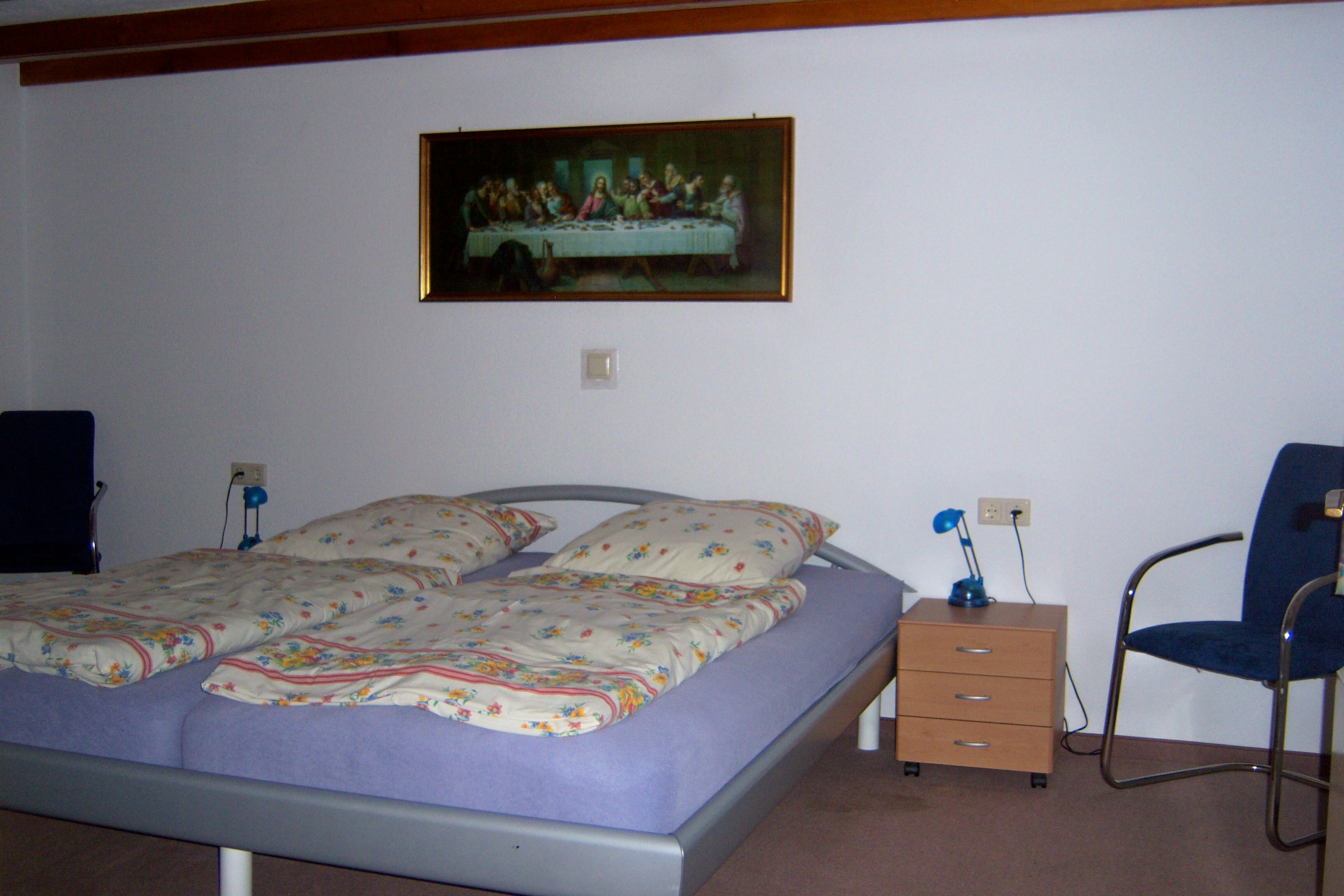 Es Ist mit einem Doppelbett mit Nachttisch und einem großem Kleiderschrank ausgestattet.