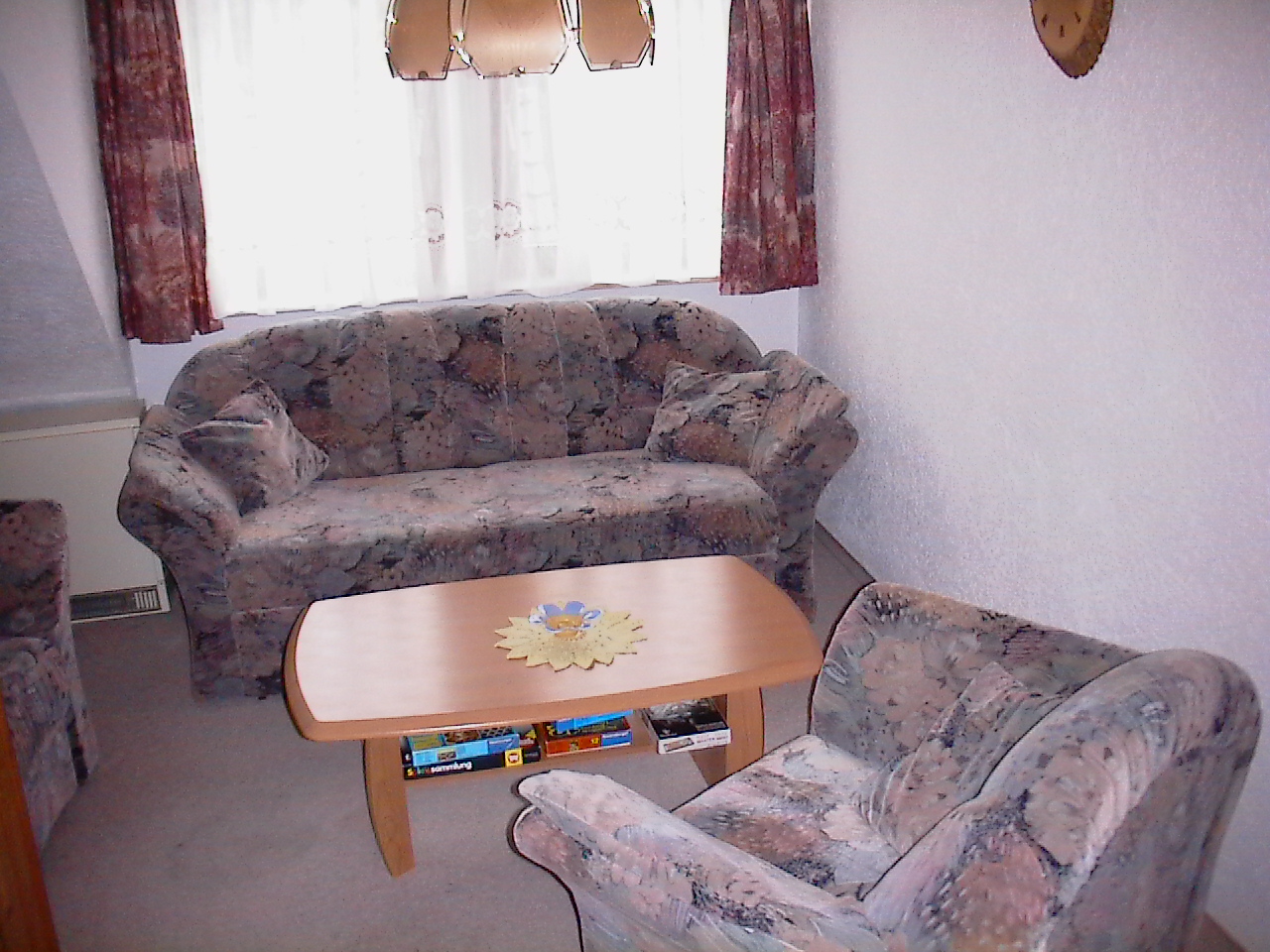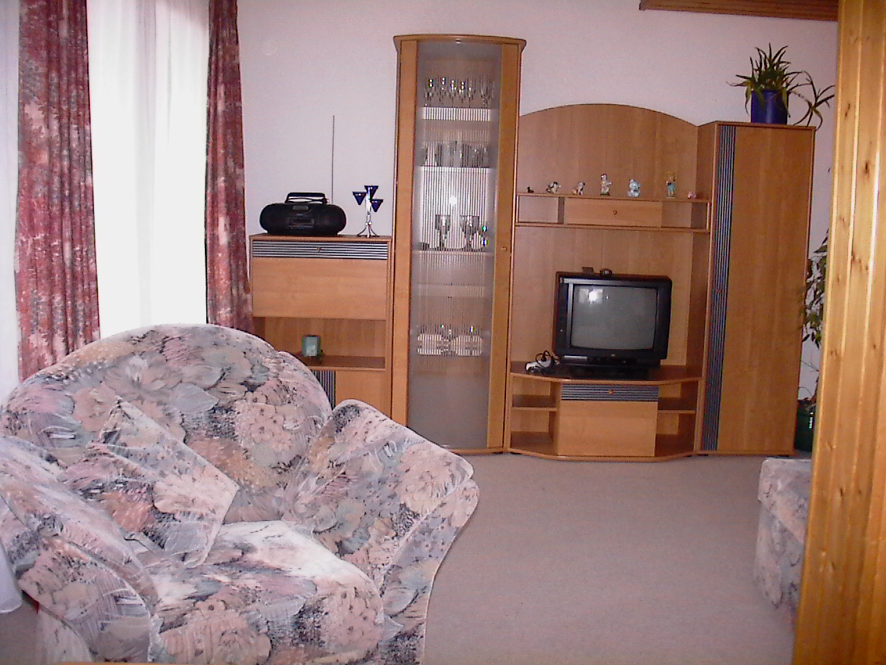 Das Wohnzimmer ist mit einer gemütlichen Polstergarnitur ausgestattet und hat DVB-S (Satelit Astra) und DVB-T Fernsehen, eine Wohnwand wo der Fernseher untergebracht ist